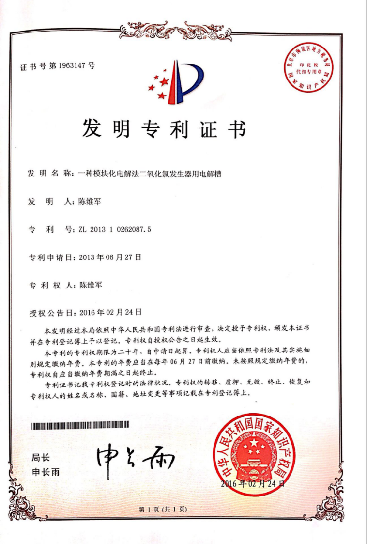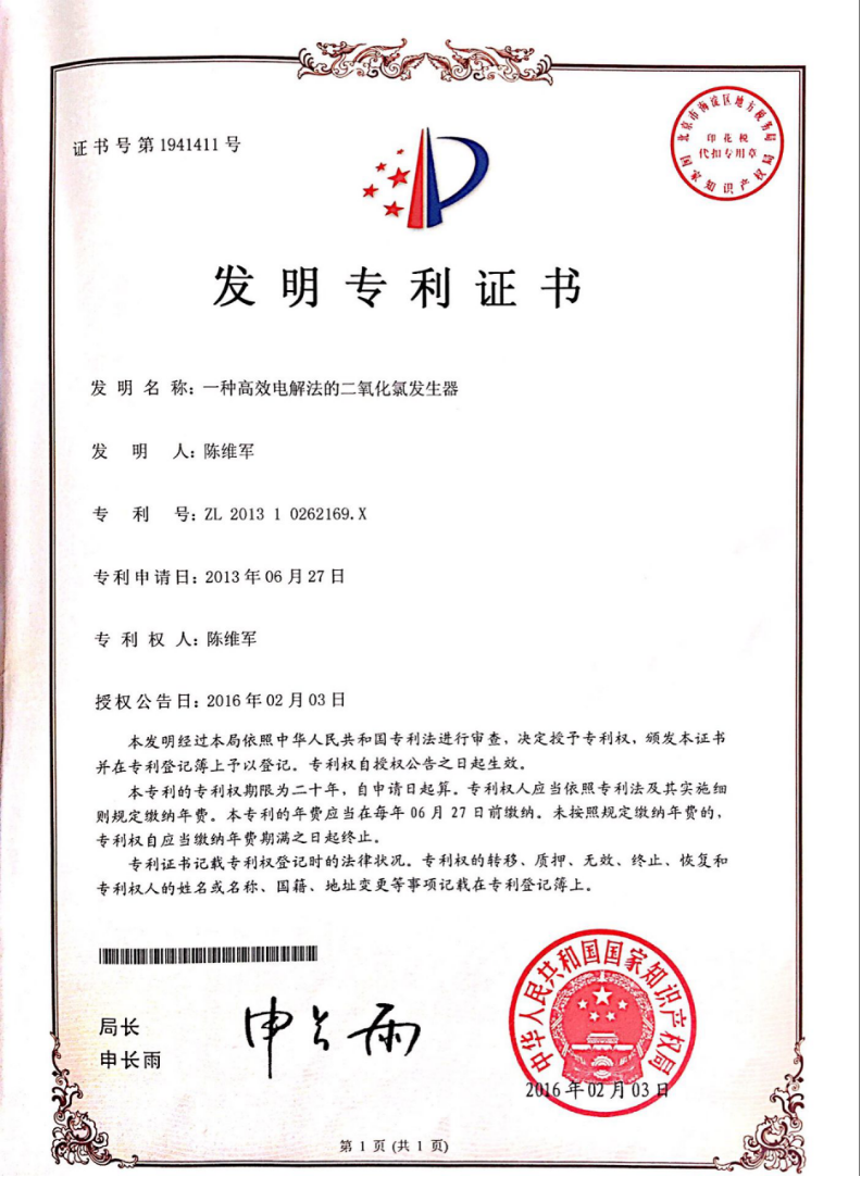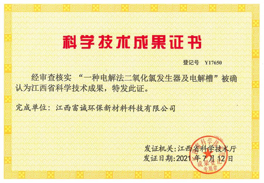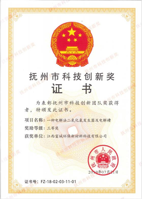 3 | 一種電解法二氧化氯發(fā)生器及電解槽 | 撫州市科技創(chuàng)新團(tuán)隊(duì)獎(jiǎng)三等獎(jiǎng) | 2018年 |