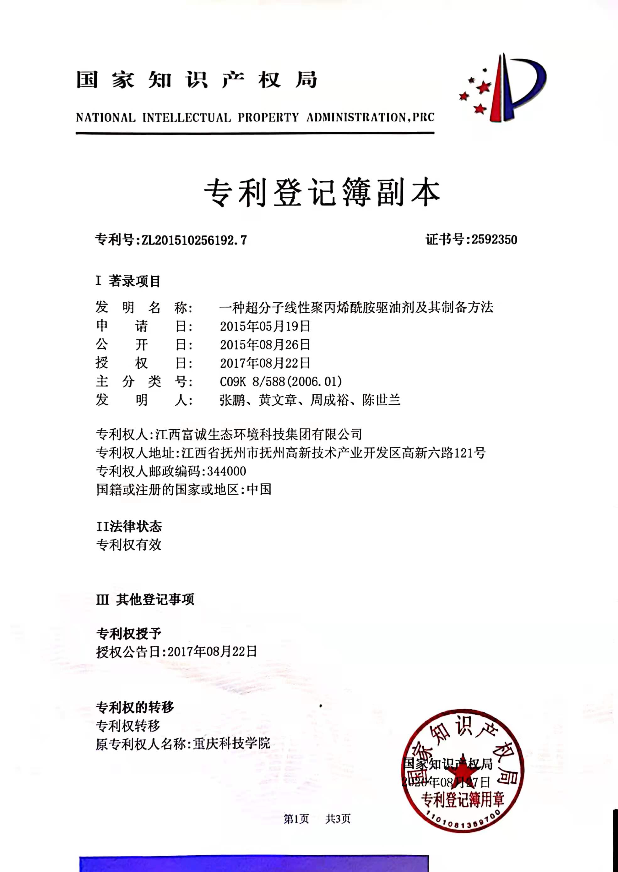 2 | 一種疏水締合聚合物及合成工藝 | 江西省科學(xué)技術(shù)成果 | 2021年 |